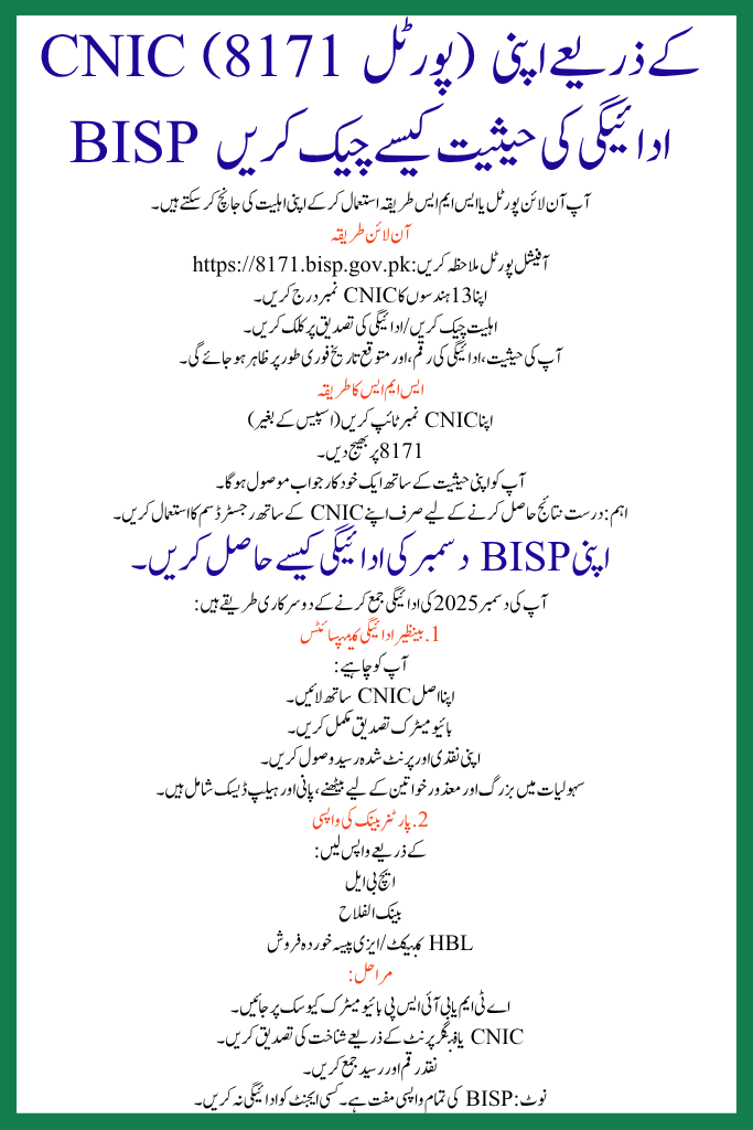 8171 BISP December 2025 Payment Schedule – Check Dates, Eligibility & CNIC Verification