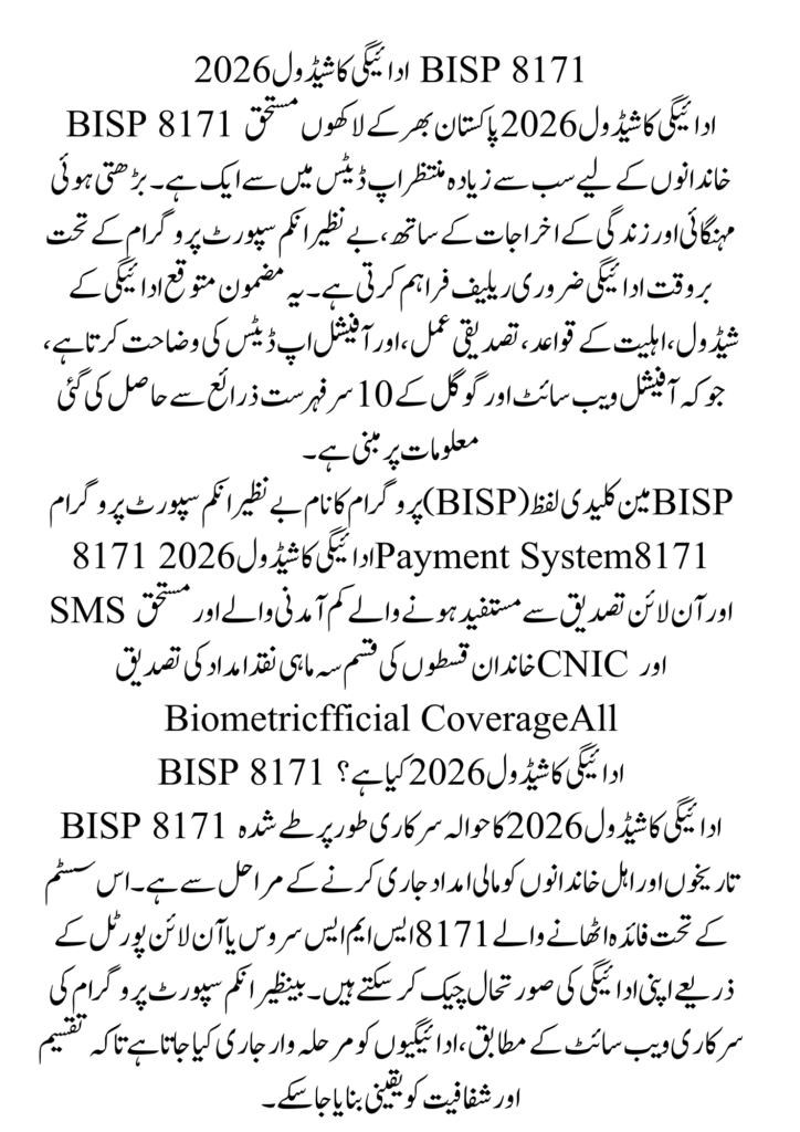 | Main Keyword | BISP 8171 payment schedule 2026 |