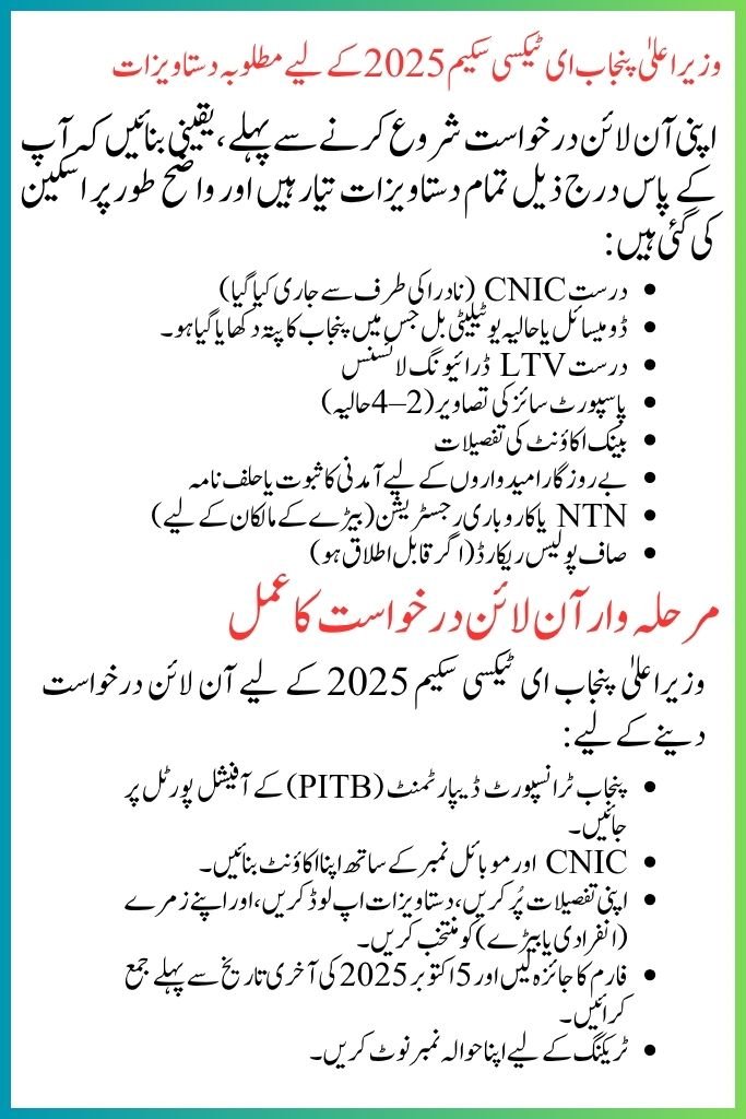 CM Punjab E-Taxi Scheme 2025 – Apply Online, Required Documents, Eligibility, and Benefits