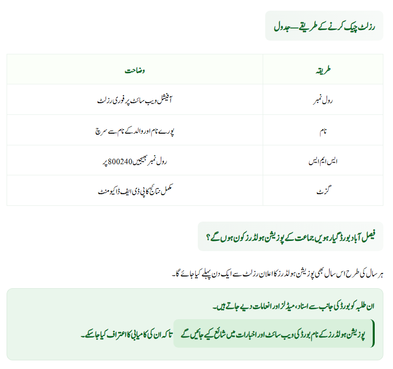 This result will help students decide which academic path to pursue next, whether it be science, commerce, or arts. The good news is that Faisalabad Board has provided multiple official methods to check the result so that every student can access it easily and without any trouble.