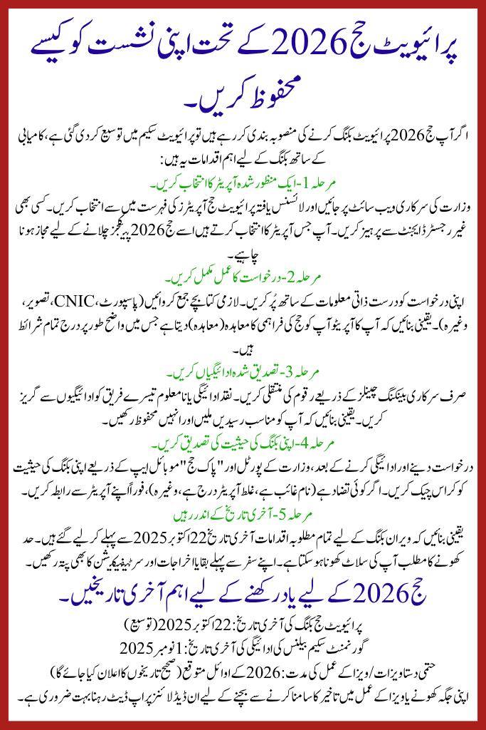 If you are planning to perform Hajj 2026 Private Booking Deadline Extended the private scheme, here are the key steps to book successfully: