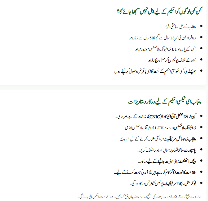 The Government of Punjab has introduced a golden opportunity for the youth under the Punjab E-Taxi Scheme 2026. Through this scheme, thousands of individuals will be able to earn a livelihood by owning and operating their own taxi. However, certain eligibility conditions have been set so that only genuine and deserving applicants benefit from it. This article will guide you step by step on who is eligible, who is not, and what documents are required. By the end, you will be able to check your eligibility and prepare everything before applying.
