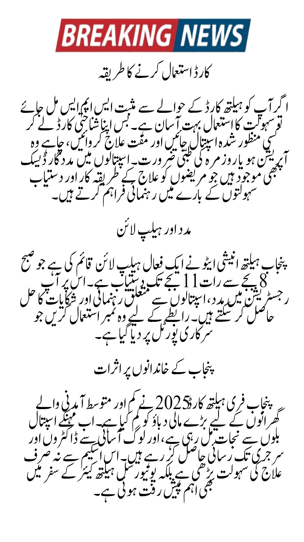 The Punjab Free Health Card 2025 reduces the financial burden on low and middle-income households.