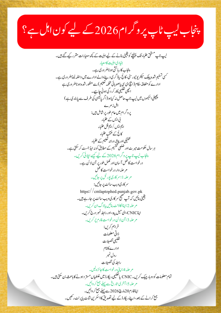 Quick Information – Punjab Laptop Program Application Deadline 2026